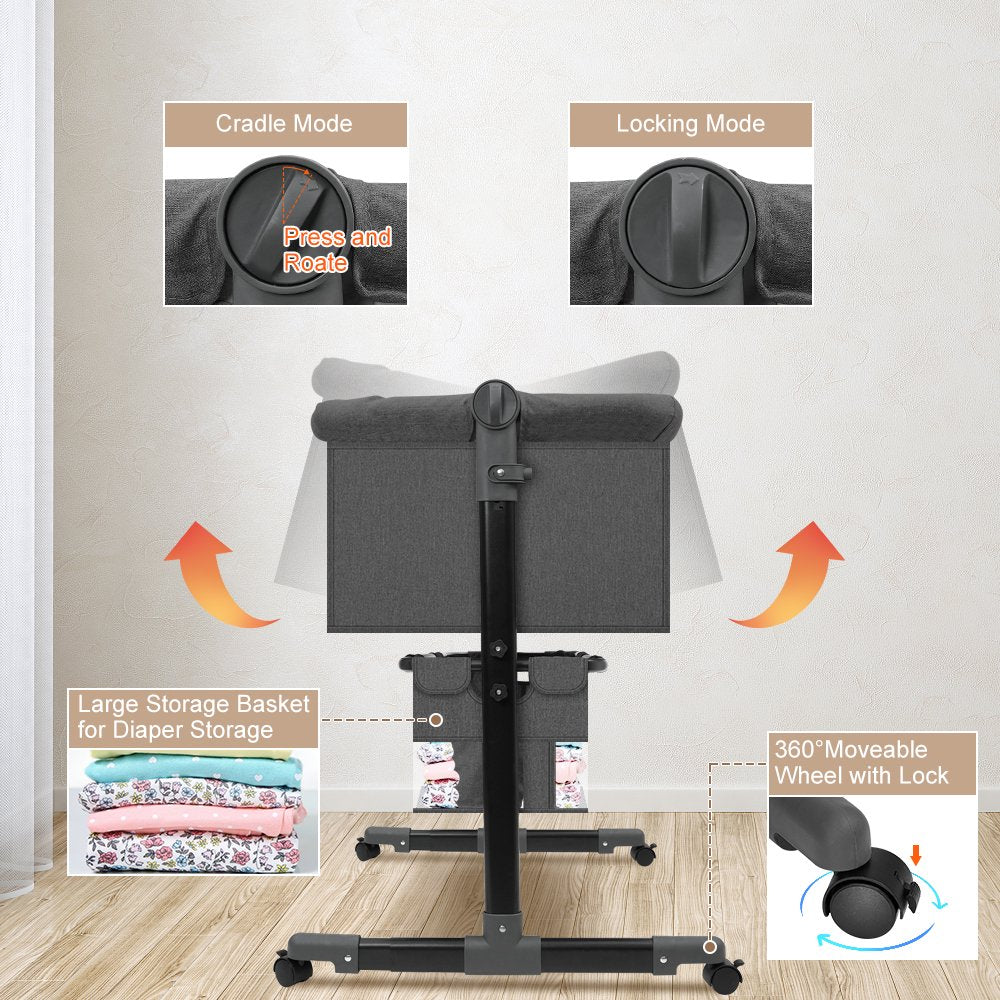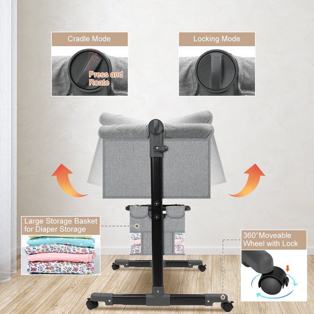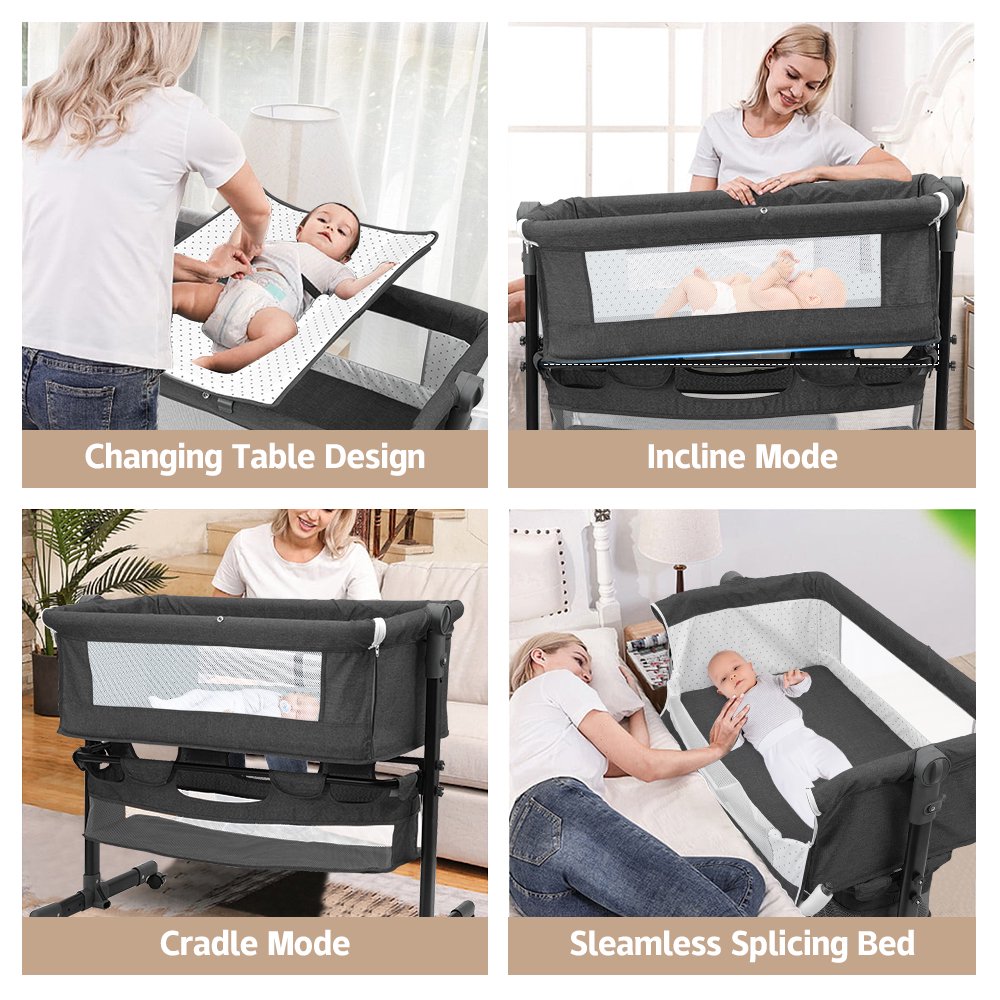 Baby Bassinet,Adjustable Baby Bassinet Bedside Sleeper with Changing Stantion,Bed Side Crib for Infants,Light Gray
