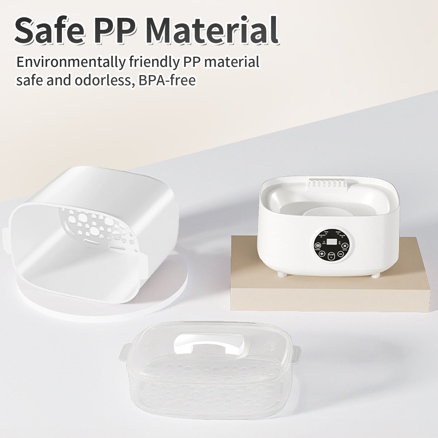 HDJ baby bottle sterilizer and dryer is made of enviromentally friendly PP material,extremly safe and odorless, BPA-free, which eliminates 99.9% of bacteria, mold and the yeast that causes thrush. Contents stay sterilized for up to 12 hours after the completion if the lid is unopened, meaning you can keep your bottles and parts stored inside with no contamination. The ceramic heating plate can heat up quickly and cleanly, plus it features an intuitive timer design and safe auto shut off.