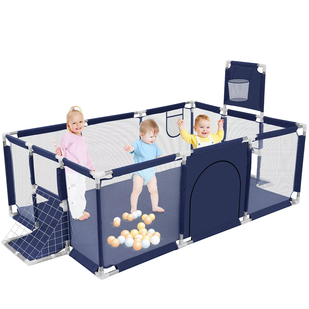 Baby Playpen,71 Inch Extra Large Baby Playard With Basketball Hoop and Breathable Mesh, Baby Play Fence for Indoors Outdoors