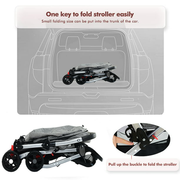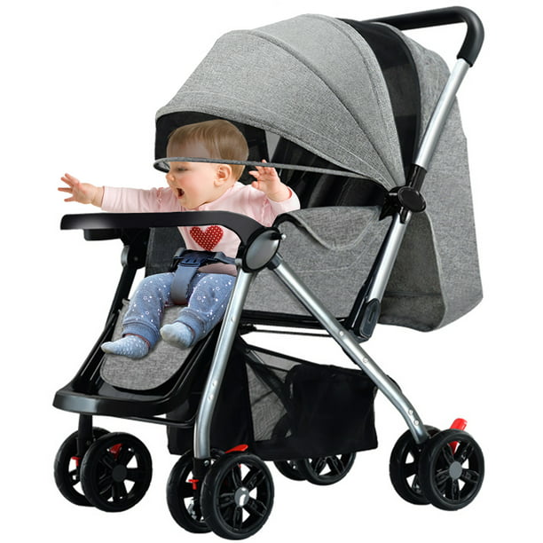 Baby Stroller, HDJ Folding High Landscape Infant Carriage, Reversible Bassinet Pram with Storage Basket, Anti-Shock Toddler Pushchair Stroller, Grey