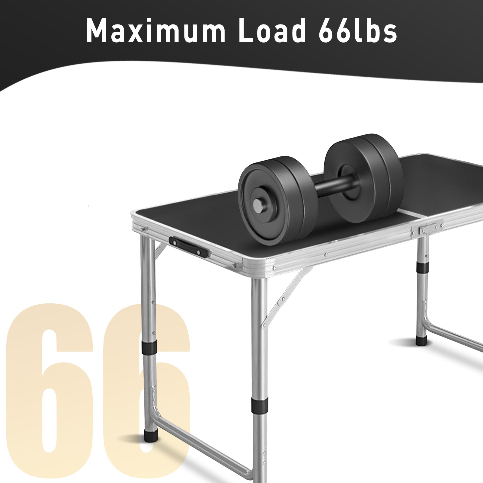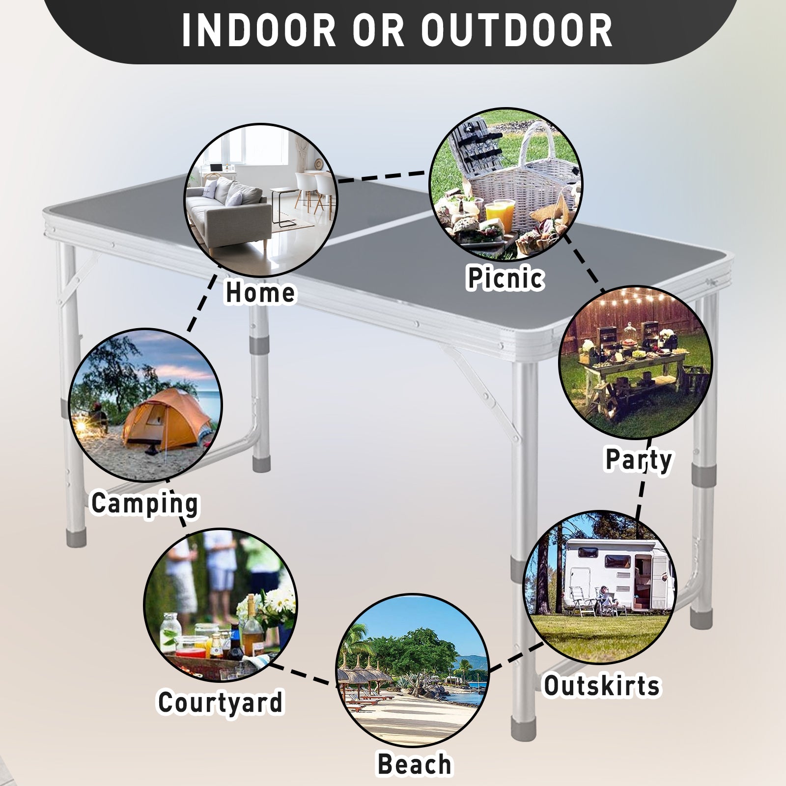 Folding Outdoor Picnic Camping Table, HDJ Portable Aluminum Kitchen Grill Table 47" x 24" with Adjustable Height for Travel Beach, Backyards, BBQ, Picnic, Black