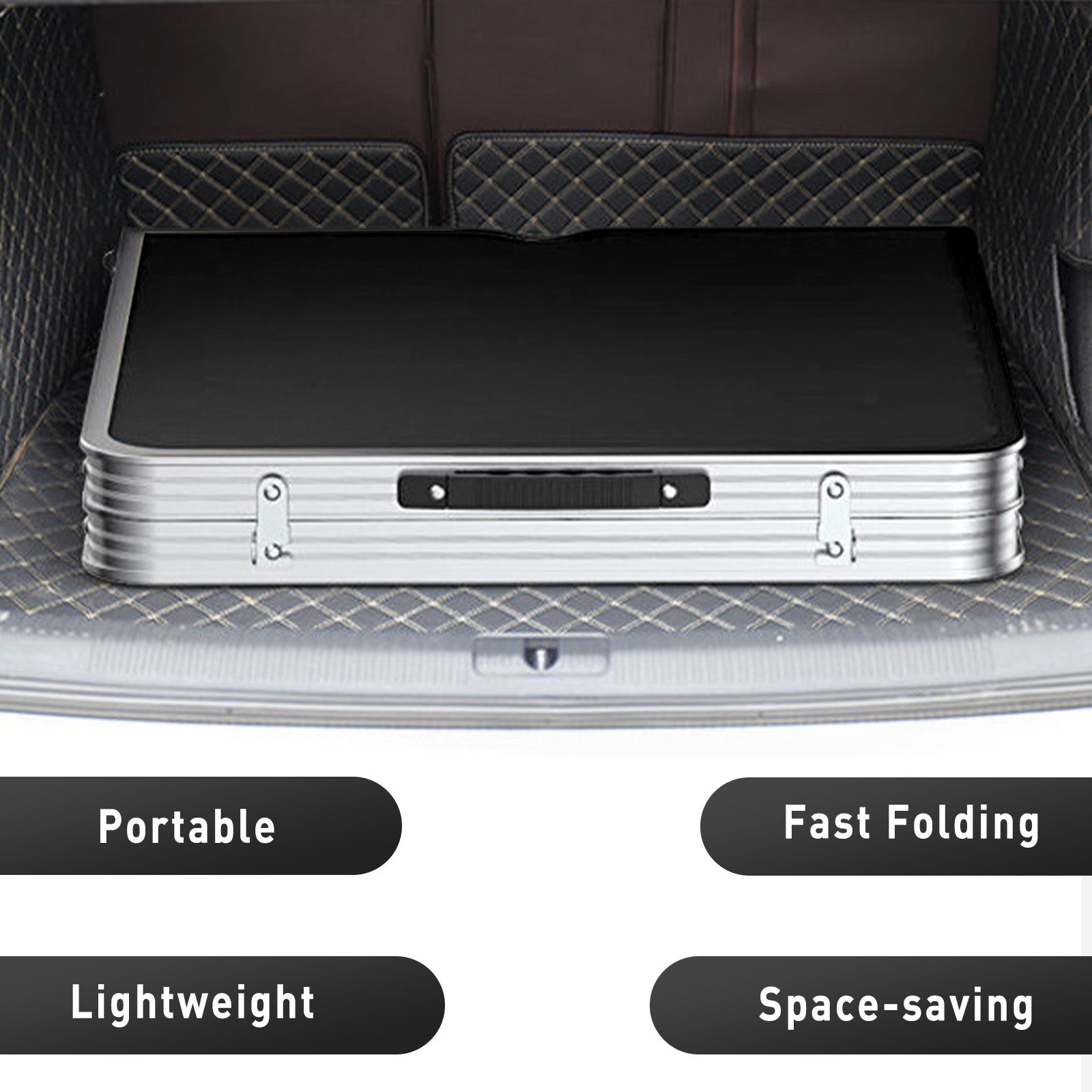 Density board and high quality aluminum alloy ensure the high quality of our camping table. The triangular structure secure latch and safety lock improve the stability of the table and enable it to withstand the weight of 66lbs.
