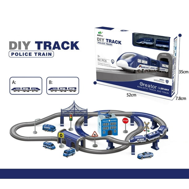 Toys Train Set for Kids, HDJ 92PCS Race Track Set for Boys Christmas Birthday Gift ,Police Toy with Cars, Copter